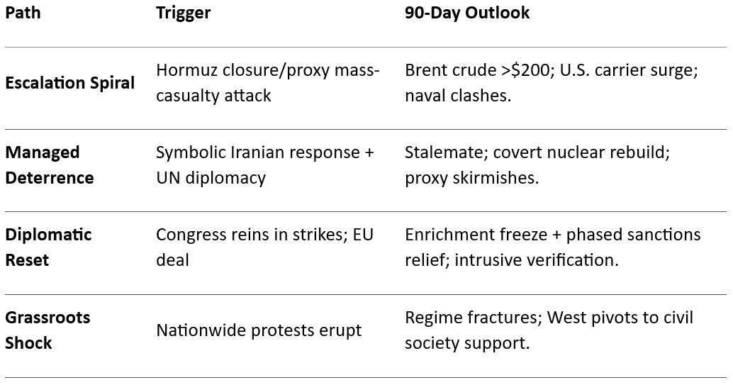 - Geopolitical Payoff: A free Iran severs the Tehran-to-Beirut axis, liberates Gulf shipping, and relieves Israel’s security chokehold without U.S. garrisons.